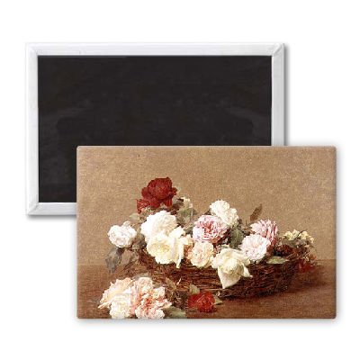 Art247 - A Basket of Roses, 1890 (oil on canvas) by.. - Aimant de réfrigérateur, 7,5 x 5 cm - gros bouton aimanté - aimant