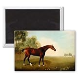 ✚✚✚ Art247 - A Bay Horse in a Field, 1778 (oil on canvas).. - Aimant de réfrigérateur, 7,5 x 5 cm - gros bouton aimanté - aimant
