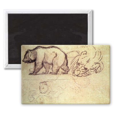 Art247 - A bear walking, the head of a lion and a.. - Aimant de réfrigérateur, 7,5 x 5 cm - gros bouton aimanté - aimant