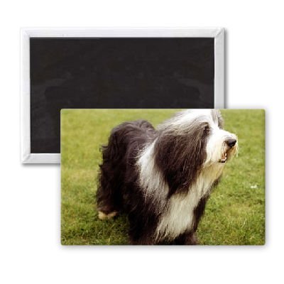 Art247 - A Bearded Collie dog June 1987 - Aimant de réfrigérateur, 7,5 x 5 cm - gros bouton aimanté - aimant