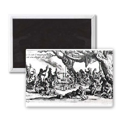 Art247 - A Birth in a Gypsy Camp (engraving) by.. - Aimant de réfrigérateur, 7,5 x 5 cm - gros bouton aimanté - aimant