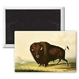 Art247 - A Bison, c.1832 (coloured engraving) by.. - Aimant de réfrigérateur, 7,5 x 5 cm - gros bouton aimanté - aimant