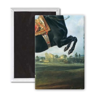 Art247 - A black horse performing the Courbette (oil.. - Aimant de réfrigérateur, 7,5 x 5 cm - gros bouton aimanté - aimant