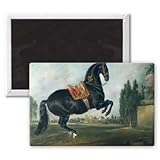 Art247 - A black horse performing the Courbette (oil.. - Aimant de réfrigérateur, 7,5 x 5 cm - gros bouton aimanté - aimant