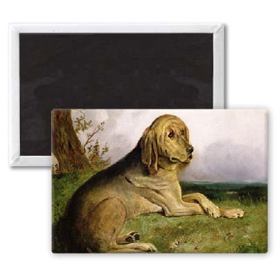 Art247 - A Bloodhound in a Landscape (oil) by English.. - Aimant de réfrigérateur, 7,5 x 5 cm - gros bouton aimanté - aimant