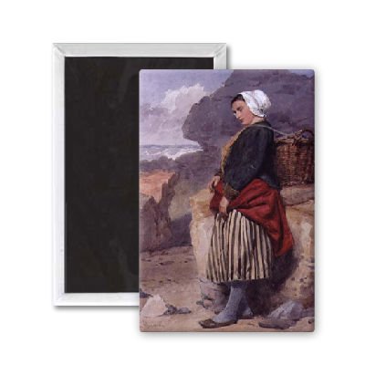 Art247 - A Boulogne fisher-girl by John Absolon - Aimant de réfrigérateur, 7,5 x 5 cm - gros bouton aimanté - aimant .