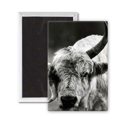 Art247 - A Bull with a twisted horn (Crumple-Horn).. - Aimant de réfrigérateur, 7,5 x 5 cm - gros bouton aimanté - aimant