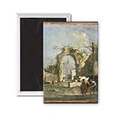 Art247 - A Capriccio - Ruins, 18th century by.. - Aimant de réfrigérateur, 7,5 x 5 cm - gros bouton aimanté - aimant