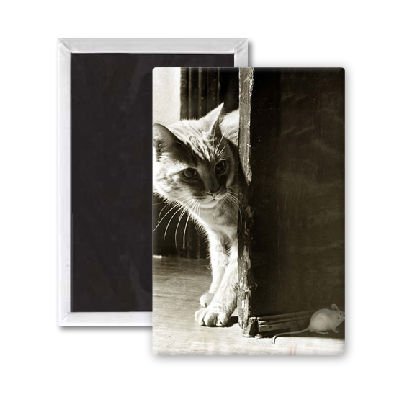 Art247 - A Cat and a Mouse - December 1949 - Aimant de réfrigérateur, 7,5 x 5 cm - gros bouton aimanté - aimant