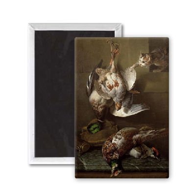 Art247 - A Cat Attacking Dead Game (oil) (one of a.. - Aimant de réfrigérateur, 7,5 x 5 cm - gros bouton aimanté - aimant