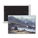 Art247 - A Chinese River with a Figure on the Bank by.. - Aimant de réfrigérateur, 7,5 x 5 cm - gros bouton aimanté - aimant