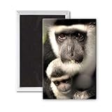 Art247 - A colbus monkey with baby, Twycross Zoo,.. - Aimant de réfrigérateur, 7,5 x 5 cm - gros bouton aimanté - aimant