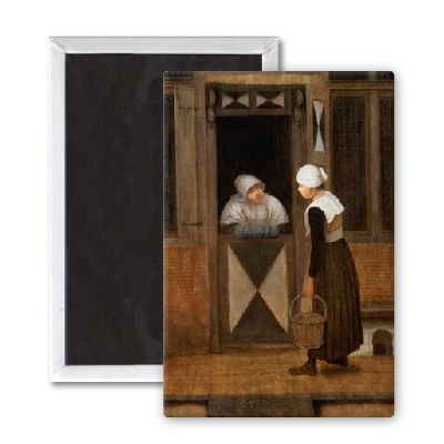 Art247 - A Conversation in the Street (oil on panel).. - Aimant de réfrigérateur, 7,5 x 5 cm - gros bouton aimanté - aimant? Art247 - A Conversation in the Street (oil on panel).. - Aimant de réfrigérateur, 7,5 x 5 cm - gros bouton aimanté - aimant?