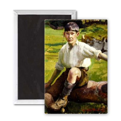 Art247 - A Cornish Boy (oil on canvas) by Harold.. - Aimant de réfrigérateur, 7,5 x 5 cm - gros bouton aimanté - aimant