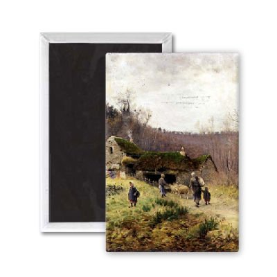 Art247 - A Country Farmstead by Frederico Rossano - Aimant de réfrigérateur, 7,5 x 5 cm - gros bouton aimanté - aimant