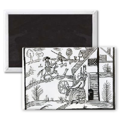 Art247 - A Country Scene with a woman spinning and.. - Aimant de réfrigérateur, 7,5 x 5 cm - gros bouton aimanté - aimant
