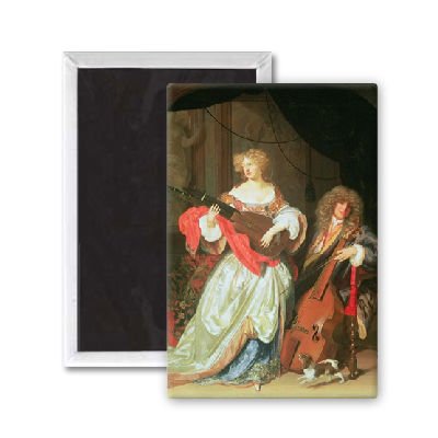 Art247 - A couple making music by Adriaan van der.. - Aimant de réfrigérateur, 7,5 x 5 cm - gros bouton aimanté - aimant