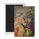 Art247 - A Couple on Horseback Beside a Moonlit Lake.. - Aimant de réfrigérateur, 7,5 x 5 cm - gros bouton aimanté - aimant