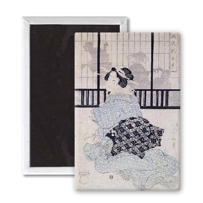 Art247 - A Courtisan with a Shamisen (colour.. - Aimant de réfrigérateur, 7,5 x 5 cm - gros bouton aimanté - aimant
