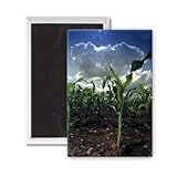 Art247 - A crop of maize grows steadily - Aimant de réfrigérateur, 7,5 x 5 cm - gros bouton aimanté - aimant