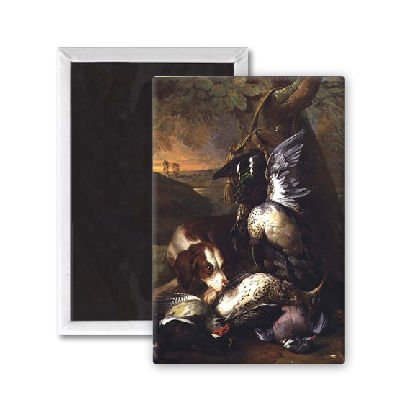 Art247 - A Dog Guarding Game (oil) (one of a pair,.. - Aimant de réfrigérateur, 7,5 x 5 cm - gros bouton aimanté - aimant