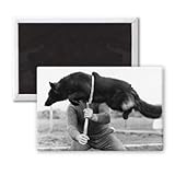 Art247 - A dog skilfully jumps through a hoop. - Aimant de réfrigérateur, 7,5 x 5 cm - gros bouton aimanté - aimant