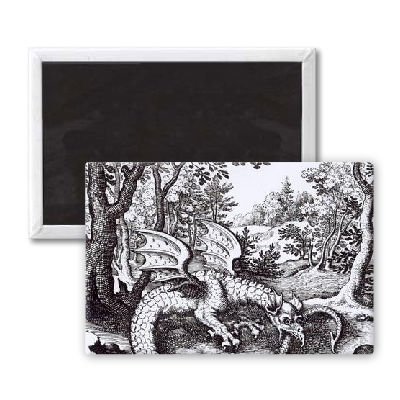 Art247 - A Dragon in the Forest, from 'Musaeum.. - Aimant de réfrigérateur, 7,5 x 5 cm - gros bouton aimanté - aimant