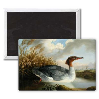 Art247 - A Dun Diver (Goosander) (oil on canvas) by.. - Aimant de réfrigérateur, 7,5 x 5 cm - gros bouton aimanté - aimant