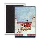 Art247 - A European Seated on a Terrace with.. - Aimant de réfrigérateur, 7,5 x 5 cm - gros bouton aimanté - aimant