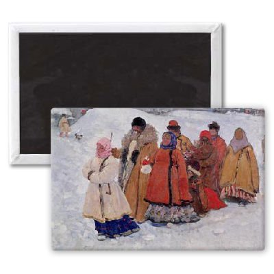 Art247 - A Family, 1909 (oil on canvas) by Sergej.. - Aimant de réfrigérateur, 7,5 x 5 cm - gros bouton aimanté - aimant