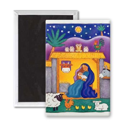 Art247 - A Farmyard Nativity, 1996 (w/c) by Cathy.. - Aimant de réfrigérateur, 7,5 x 5 cm - gros bouton aimanté - aimant