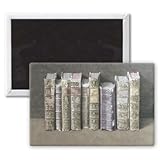 ✚✚✚ Art247 - A Fine Library, 2004 (w/c on paper) by.. - Aimant de réfrigérateur, 7,5 x 5 cm - gros bouton aimanté - aimant