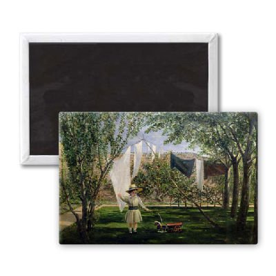 Art247 - A Garden Scene, with a boy, the artist's son.. - Aimant de réfrigérateur, 7,5 x 5 cm - gros bouton aimanté - aimant