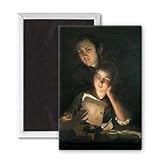 Art247 - A Girl reading a letter by Candlelight, with.. - Aimant de réfrigérateur, 7,5 x 5 cm - gros bouton aimanté - aimant