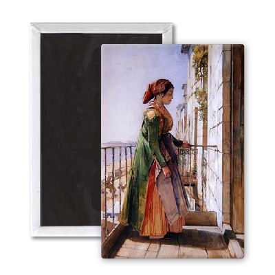 Art247 - A Greek Girl Standing on a Balcony, c.1840.. - Aimant de réfrigérateur, 7,5 x 5 cm - gros bouton aimanté - aimant