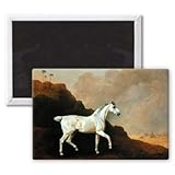 Art247 - A Grey Arab Stallion in a Desert Landscape.. - Aimant de réfrigérateur, 7,5 x 5 cm - gros bouton aimanté - aimant