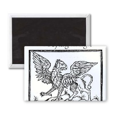 Art247 - A Griffin (woodcut) (b/w photo) by English.. - Aimant de réfrigérateur, 7,5 x 5 cm - gros bouton aimanté - aimant