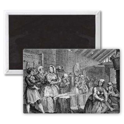 Art247 - A Harlot's Progress, plate IV, Scene in.. - Aimant de réfrigérateur, 7,5 x 5 cm - gros bouton aimanté - aimant