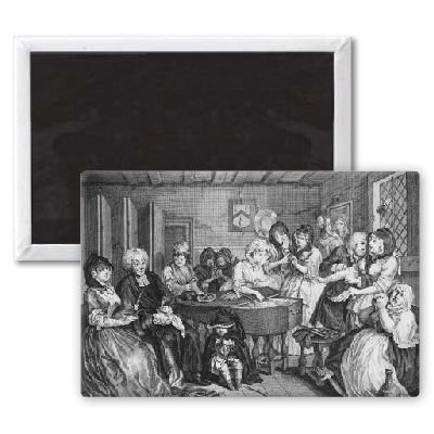 Art247 - A Harlot's Progress, plate VI, The Funeral.. - Aimant de réfrigérateur, 7,5 x 5 cm - gros bouton aimanté - aimant