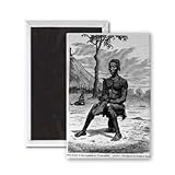 Art247 - A Harp Player of the Azandeh or Nyam-Nyams,.. - Aimant de réfrigérateur, 7,5 x 5 cm - gros bouton aimanté - aimant