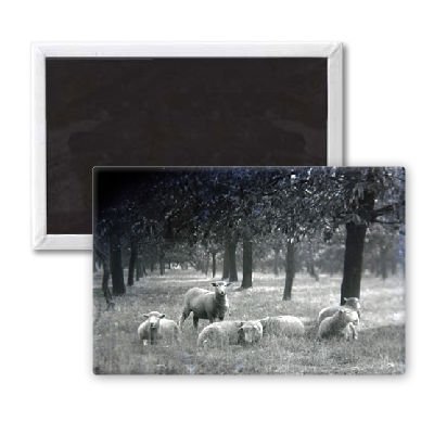 Art247 - A herd of sheep enjoying the sunshine in the.. - Aimant de réfrigérateur, 7,5 x 5 cm - gros bouton aimanté - aimant