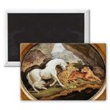 Art247 - A Horse Frightened by a Lioness after George.. - Aimant de réfrigérateur, 7,5 x 5 cm - gros bouton aimanté - aimant