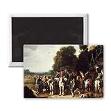 Art247 - A Hunting Party (oil on panel) (pair with.. - Aimant de réfrigérateur, 7,5 x 5 cm - gros bouton aimanté - aimant