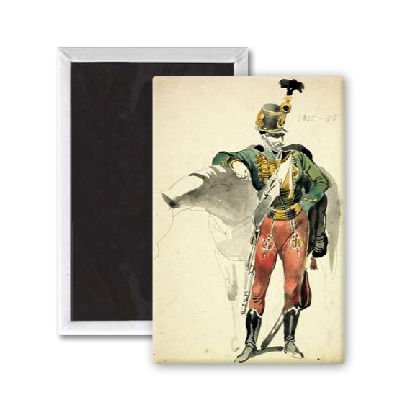 Art247 - A Hussar of the 9th Regiment, Light Cavalry.. - Aimant de réfrigérateur, 7,5 x 5 cm - gros bouton aimanté - aimant