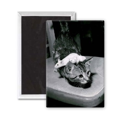 Art247 - A kitten playing with pet mice at a pet shop.. - Aimant de réfrigérateur, 7,5 x 5 cm - gros bouton aimanté - aimant