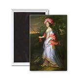 ✚✚✚ Art247 - A Lady in Masquerade Costume, c.1679 by John.. - Aimant de réfrigérateur, 7,5 x 5 cm - gros bouton aimanté - aimant
