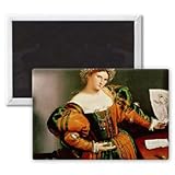 Art247 - A Lady with a Drawing of Lucretia, c.1530-33.. - Aimant de réfrigérateur, 7,5 x 5 cm - gros bouton aimanté - aimant