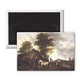 Art247 - A landscape with a cottage and horsemen (oil.. - Aimant de réfrigérateur, 7,5 x 5 cm - gros bouton aimanté - aimant