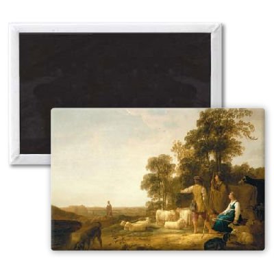 Art247 - A Landscape with Shepherds and Shepherdesses.. - Aimant de réfrigérateur, 7,5 x 5 cm - gros bouton aimanté - aimant
