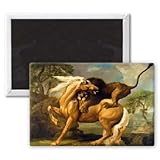 Art247 - A Lion Attacking a Horse, c.1762 (oil on.. - Aimant de réfrigérateur, 7,5 x 5 cm - gros bouton aimanté - aimant